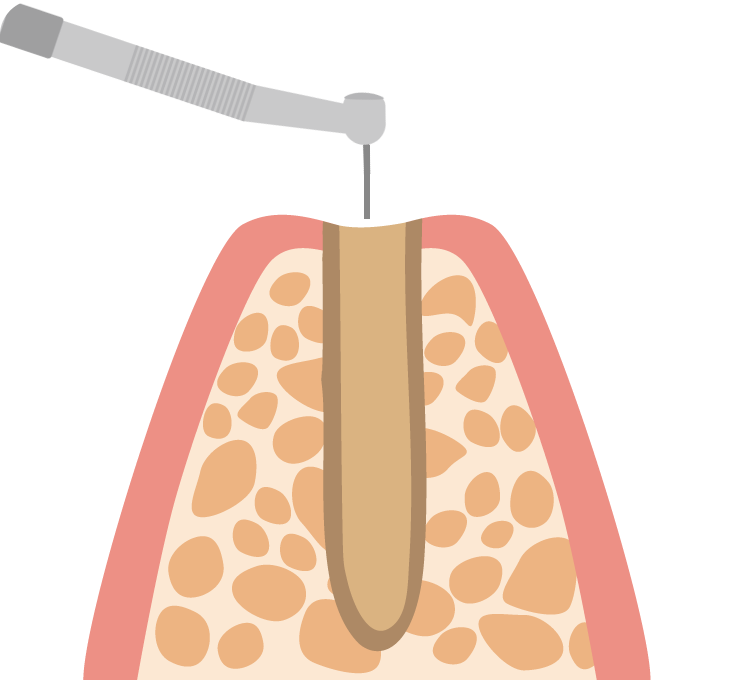 - 歯ぐきを開き、顎の骨にインプラントを埋め込む穴をあける